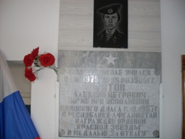 В школе установлена мемориальная доска в память Титову Алексею - воину-интернационалисту, погибшему в Афганистане. Сгорело сердце юного героя Но жар его живет в душе моей. Не потому ль и солнце ярче втрое, И даль земная втрое голубей. Он не вернется к людям благодарным Но мир, что дерзким мужеством спасен, Мне видится таким же лучезарным, Каким его умел увидеть он. Храним мы эту землю, как святую. На ней он встретил свой последний час. И синь небес сквозит прозрачной синью Его восторженно горячих глаз. подробнее Aleksei_Titov.htm Публичный отчет директора школы за 2011-2012 учебный год Publichnyi_otchet_direktora_MBOU_11-12g.docx